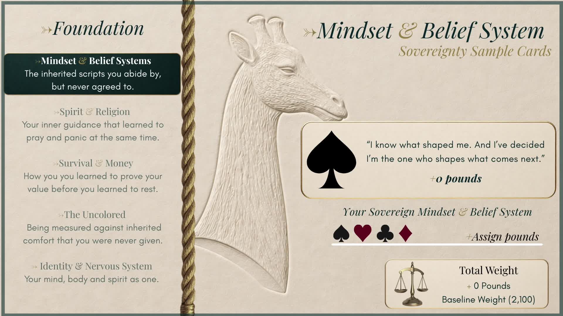 Skip to Videos Calibrations | Maison Introduction | Get Calibrated | Baseline Altitude | Sovereignty Altitude | Recalibration | 5-8 Understanding Recalibration & Djordje Deuteronomy 8-10 The Rope & Core 5 Foundations 11-14 Baseline Altitude & Card Deal 15-17 Baseline Foundation Cards & Tally 18-19 Baseline Recalibration 20-22 Baseline Architect Talk & Aye Cuz 22-25 Sovereignty Intro 25-26 Sovereignty Card Draw 27-28 Sovereignty Recalibration Integration & Closing